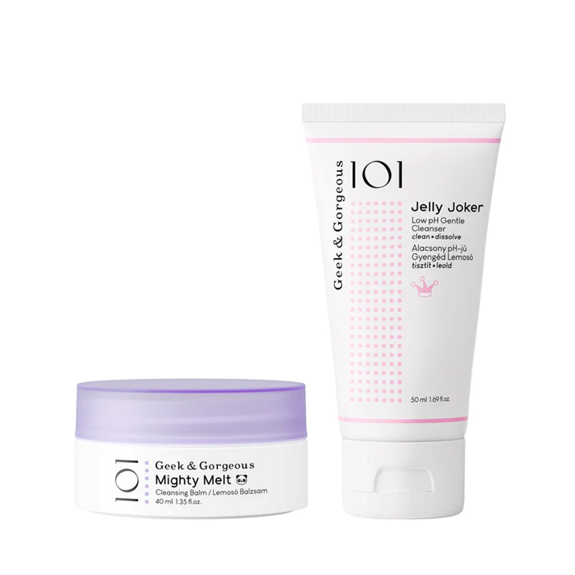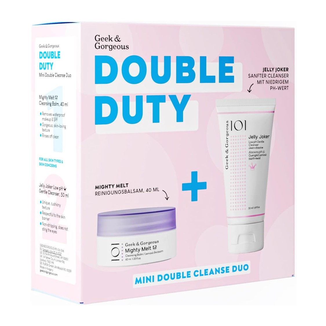 ست پاکسازی دو مرحلهای دابل دیوتی گیگ اند گورجس (Geek & Gorgeous Double Duty Double Cleanse Duo) یک پک مینی و کاربردی برای پاکسازی عمیق پوست است که با ترکیب بالم پاککننده و ژل شستشوی ملایم، تمام آلودگیها، آرایش و چربی اضافه را بدون خشکی از پوست حذف میکند.