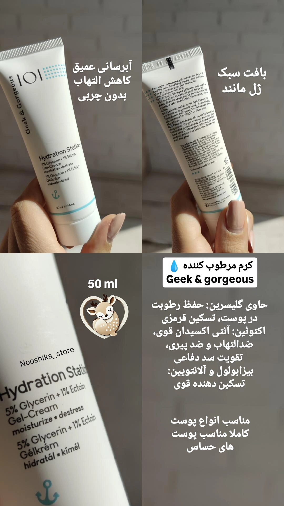 مرطوبکننده گیک اند گورجس مدل Hydration Station، محصولی ایدهآل برای تأمین رطوبت و حفظ سلامت پوست شماست. این کرم با ترکیبات خاص و بافت سبک، مناسب برای انواع پوست بوده و به سرعت جذب پوست میشود.