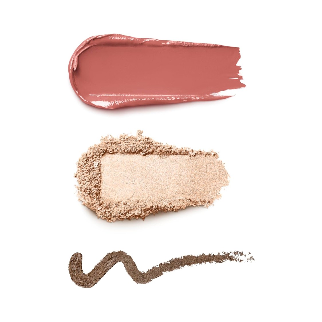 این مجموعه آرایشی در بستهبندی زیبا و قابل هدیه دادن عرضه میشود و ترکیبی از سه محصول اساسی آرایش لب و چشم را در خود جای داده است: