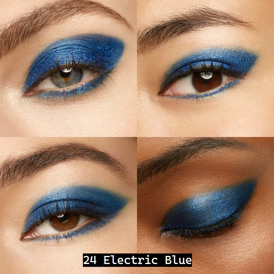 رنگ 24 یک آبی الکتریکی جسورانه و پررنگ با افکت متالیک است که جلوهای خاص و چشمگیر به آرایش چشم میدهد. این رنگ به دلیل درخشش فوقالعاده و تناژ سرد خود، برای آرایشهای فانتزی، گرافیکی و حتی بهعنوان خط چشم مناسب است. استفاده از این رنگ روی چشمان قهوهای، فندقی و خاکستری جلوهای خیرهکننده ایجاد میکند.