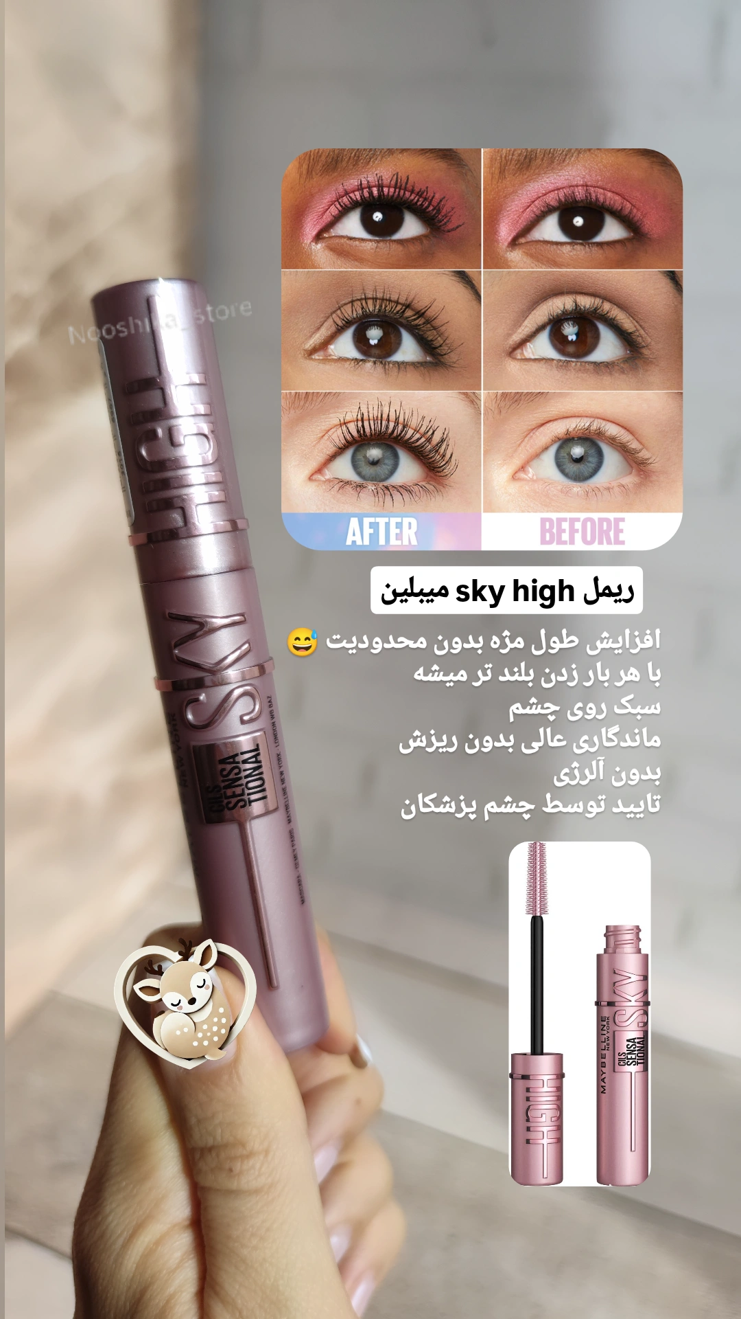 ریمل میبلین اسکای های (Sky High) با فرمولاسیون ویژه و طراحی برس انعطافپذیر، مژهها را به طور یکنواخت پوشش داده و به آنها طول و حجم بینظیری میبخشد. این محصول ضدآب بوده و ماندگاری بالایی دارد، بدون آنکه مژهها را سنگین کند یا باعث چسبندگی آنها شود.